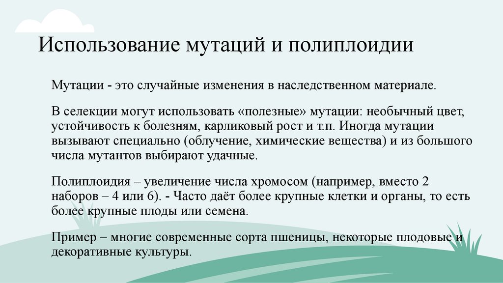 Использование мутаций и полиплоидииМутации - это случайные изменения в наследственном материале.