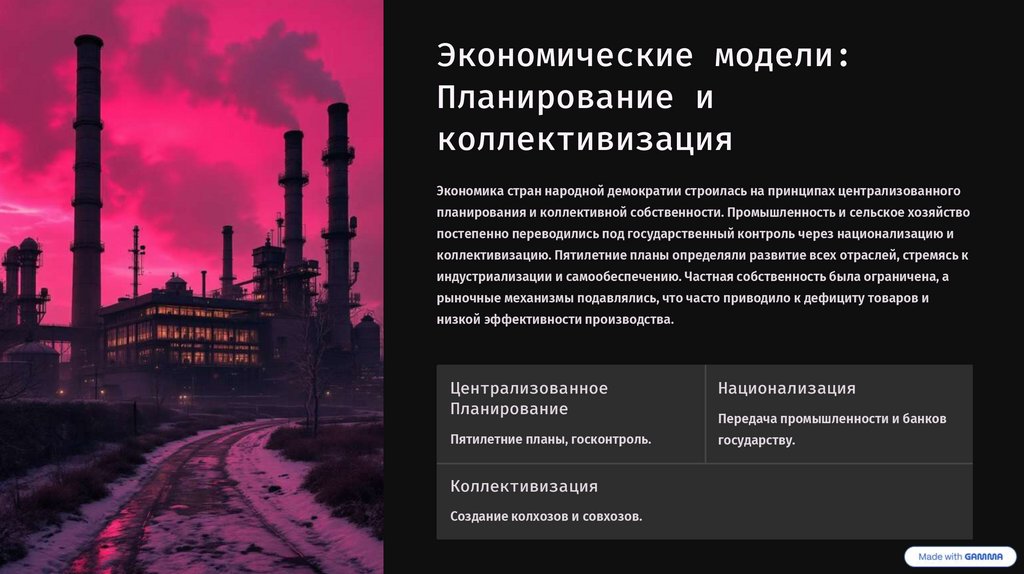планирования и коллективной собственности. Промышленность и сельское хозяйство