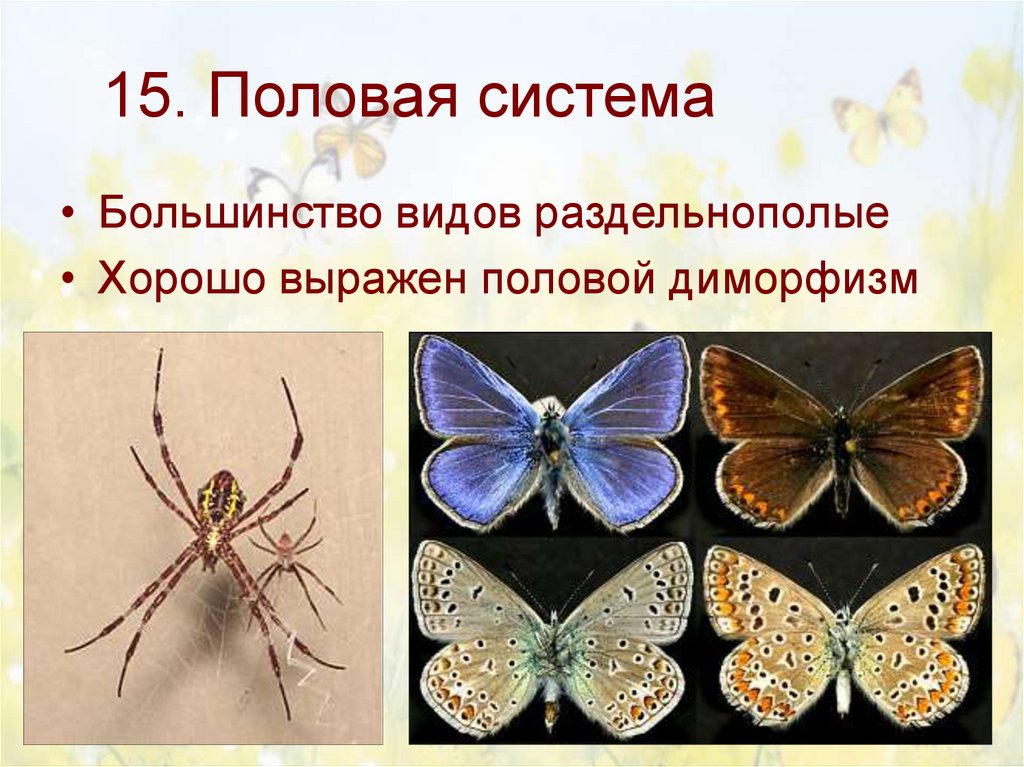 15. Половая система• Большинство видов раздельнополые