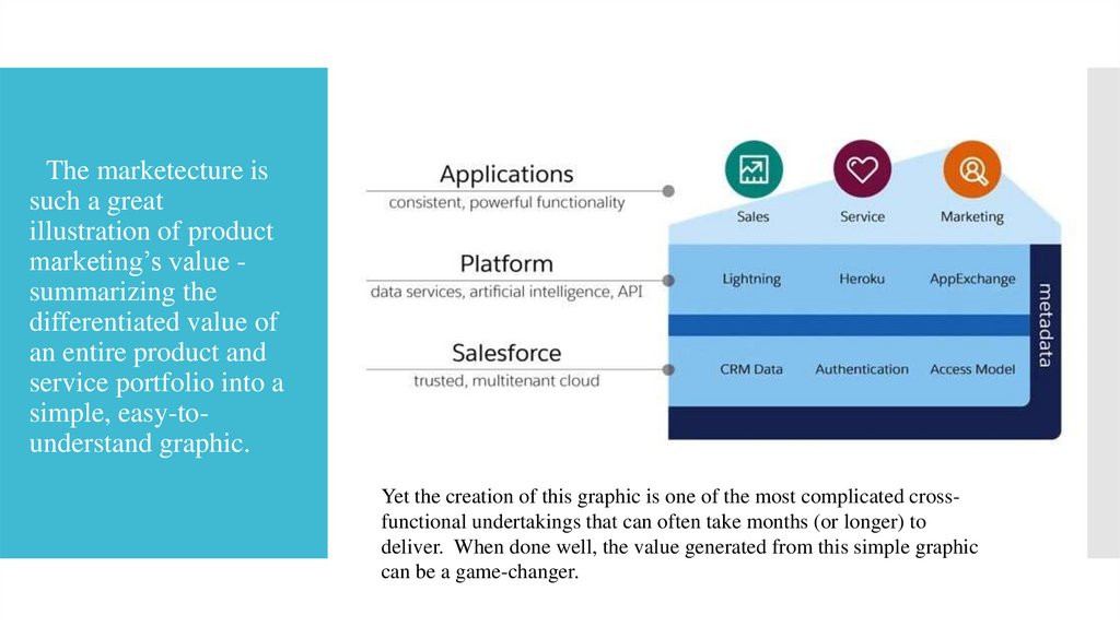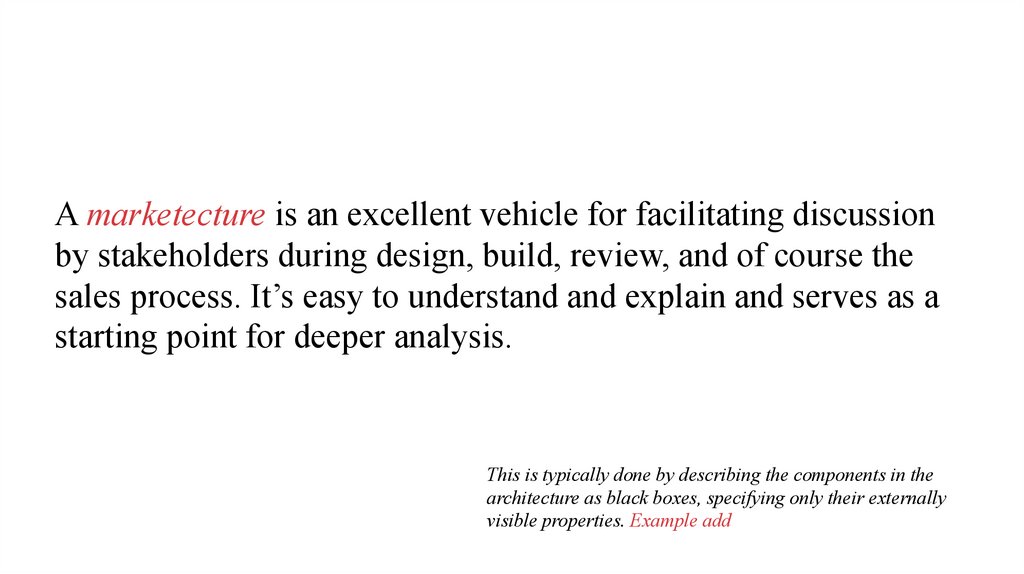 A marketecture is an excellent vehicle for facilitating discussionby stakeholders during design, build, review, and of course the
