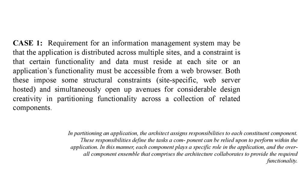 CASE 1: Requirement for an information management system may bethat the application is distributed across multiple sites, and a constraint is