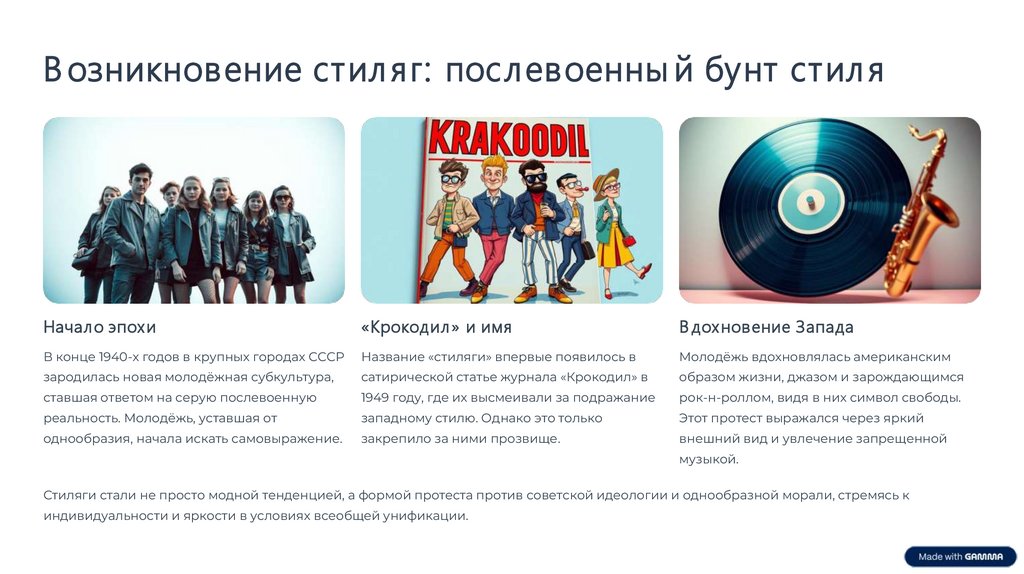 Стиляги стали не просто модной тенденцией, а формой протеста против советской идеологии и однообразной морали, стремясь к