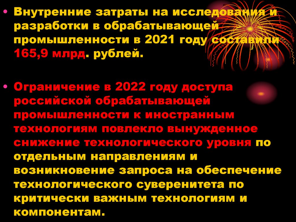 • Внутренние затраты на исследования иразработки в обрабатывающей
