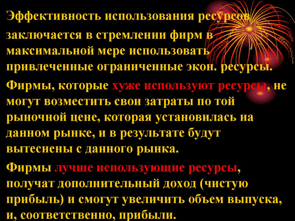 Эффективность использования ресурсовзаключается в стремлении фирм в