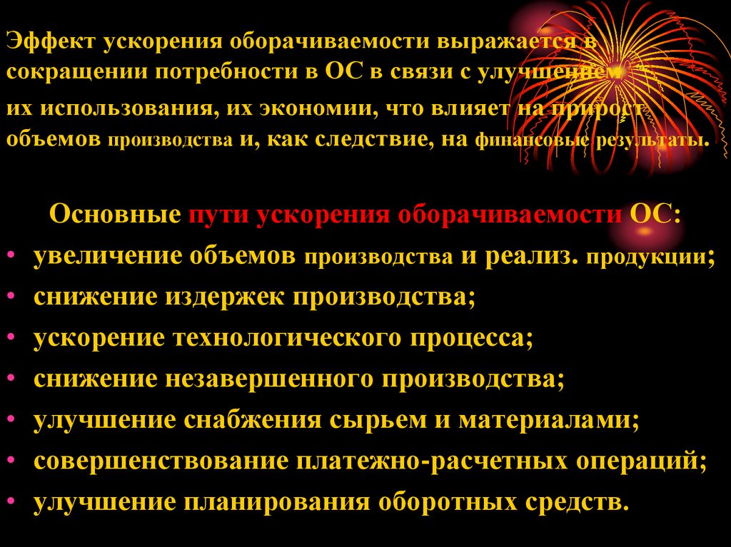 Эффект ускорения оборачиваемости выражается всокращении потребности в ОС в связи с улучшением
