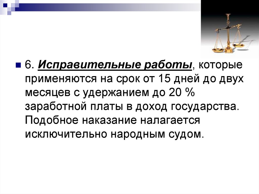 6. Исправительные работы, которыеприменяются на срок от 15 дней до двух