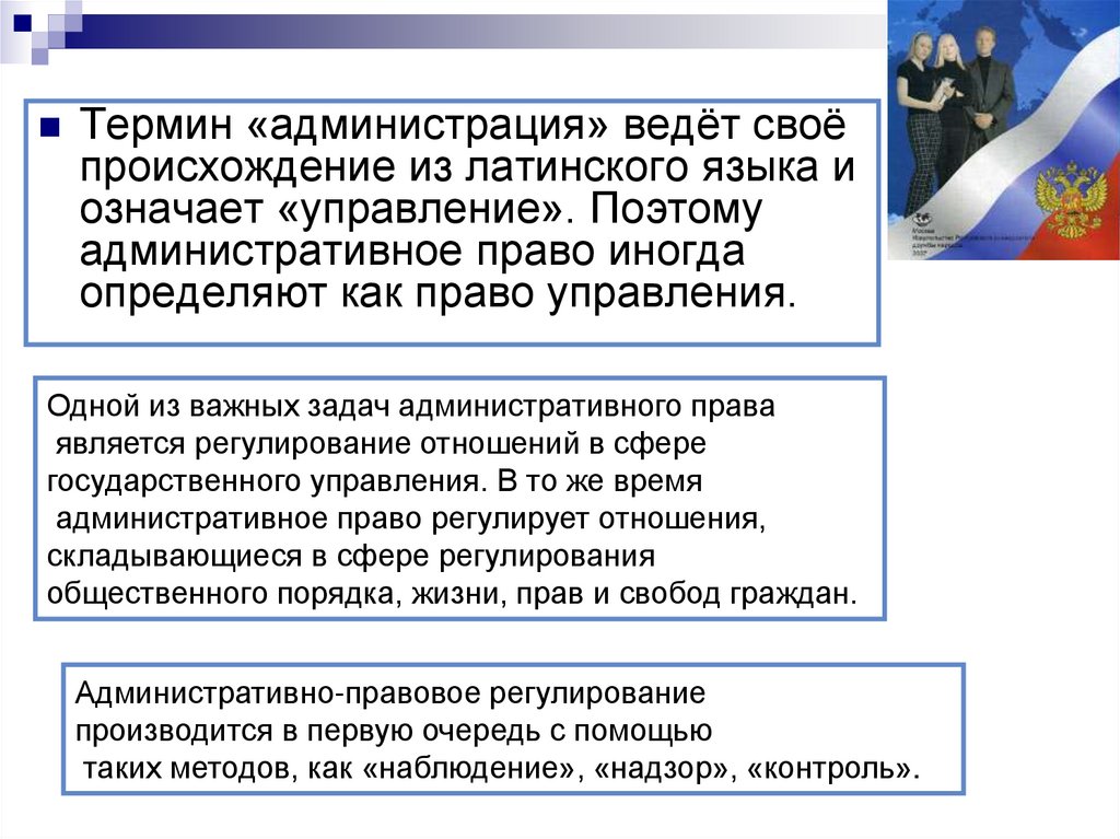 Термин «администрация» ведёт своёпроисхождение из латинского языка и