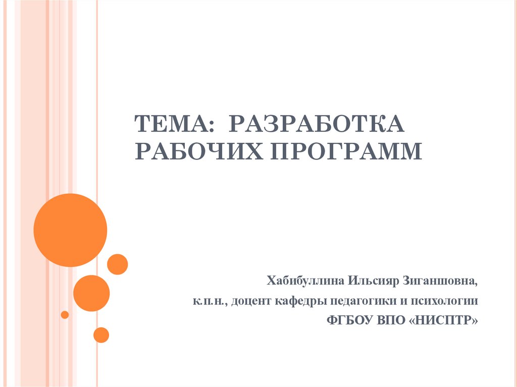 1. ТЕМА: РАЗРАБОТКА РАБОЧИХ ПРОГРАММ