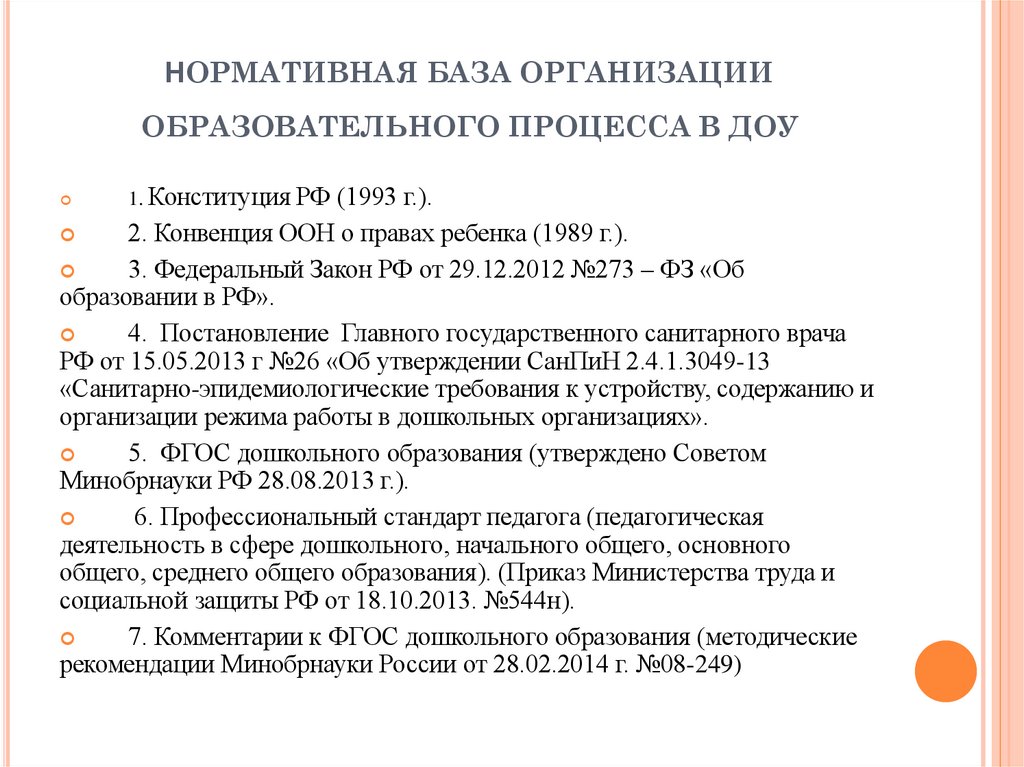 2. НОРМАТИВНАЯ БАЗА ОРГАНИЗАЦИИ ОБРАЗОВАТЕЛЬНОГО ПРОЦЕССА В ДОУ
