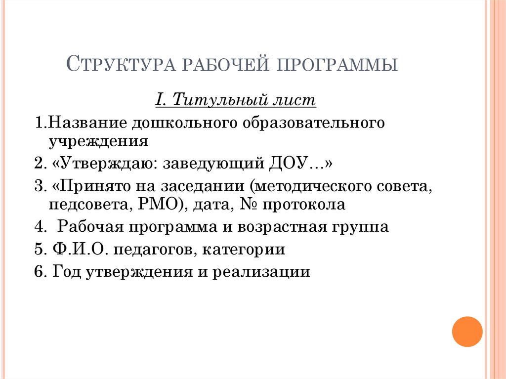 СТРУКТУРА РАБОЧЕЙ ПРОГРАММЫI. Титульный лист