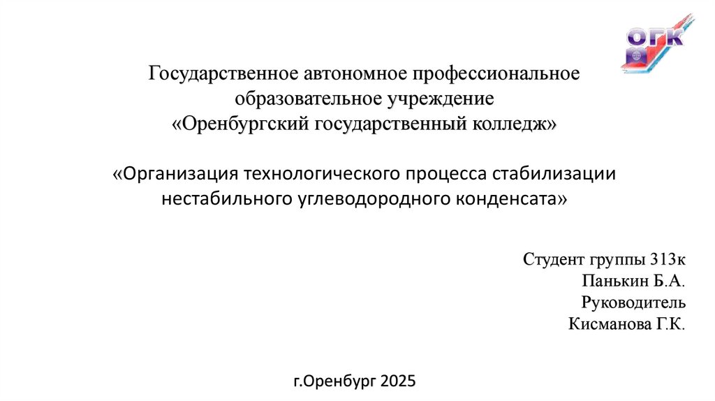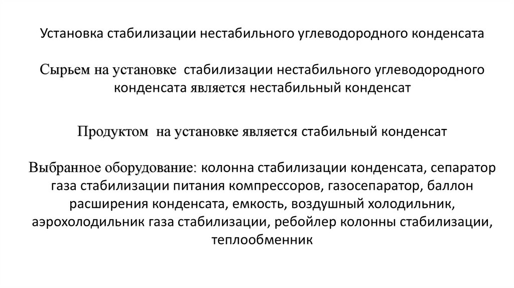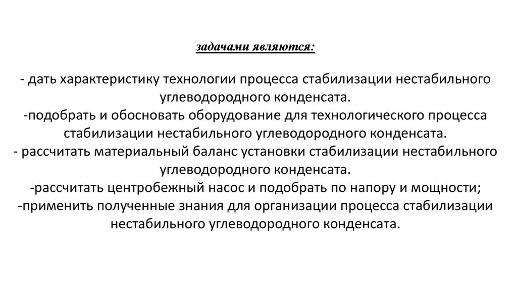 задачами являются:- дать характеристику технологии процесса стабилизации нестабильного