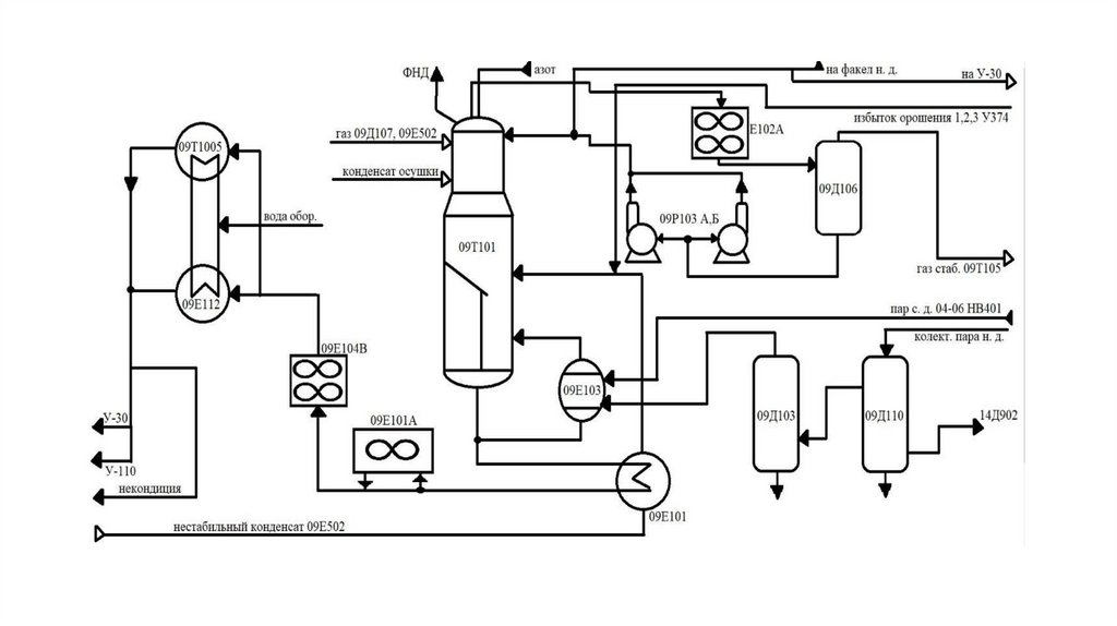 Установка стабилизации нестабильного углеводородного конденсатаСырьем на установке стабилизации нестабильного углеводородного