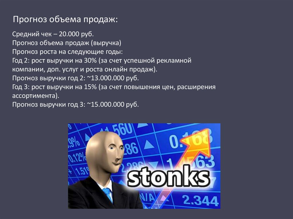 Прогноз объема продаж:Средний чек – 20.000 руб.