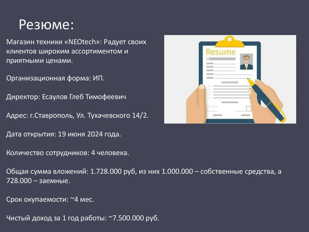 Резюме:Магазин техники «NEOtech»: Радует своих