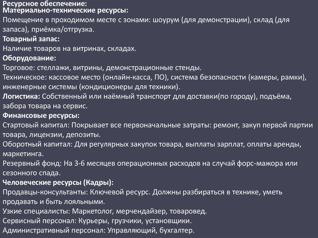 Ресурсное обеспечение:Материально-технические ресурсы: