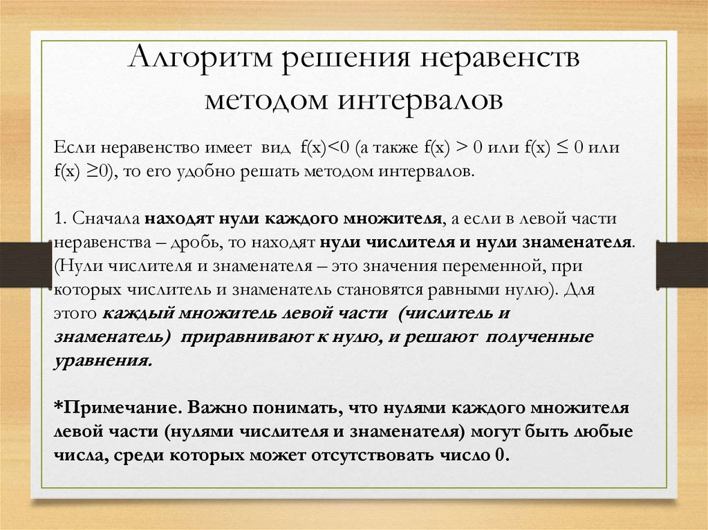 Алгоритм решения неравенствметодом интервалов