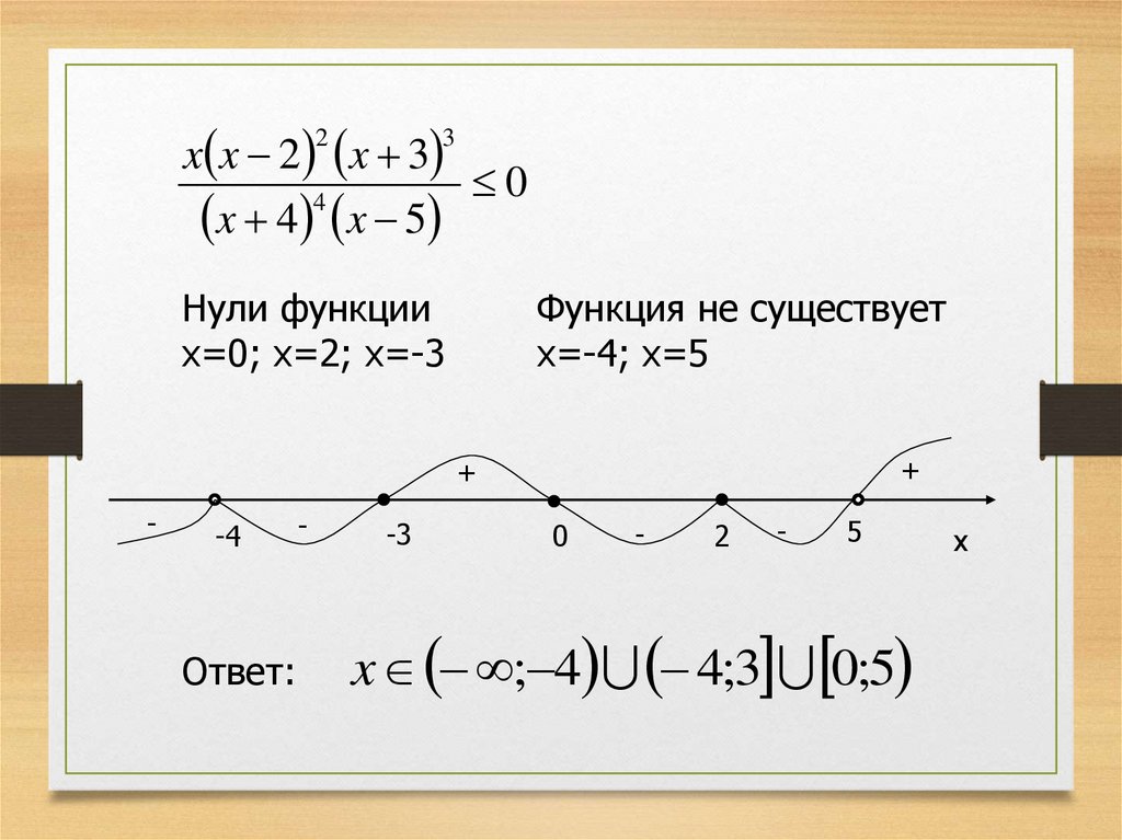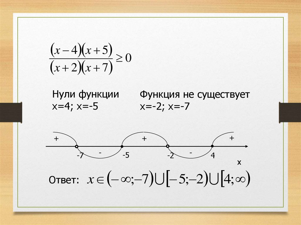 неравенства – дробь, то находят нули числителя и нули знаменателя.
