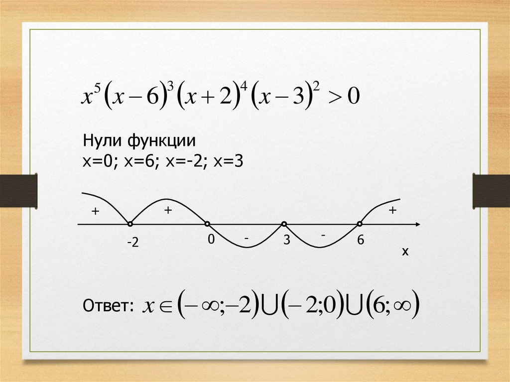 каждом промежутке и над ними проставляются + или − в соответствии с