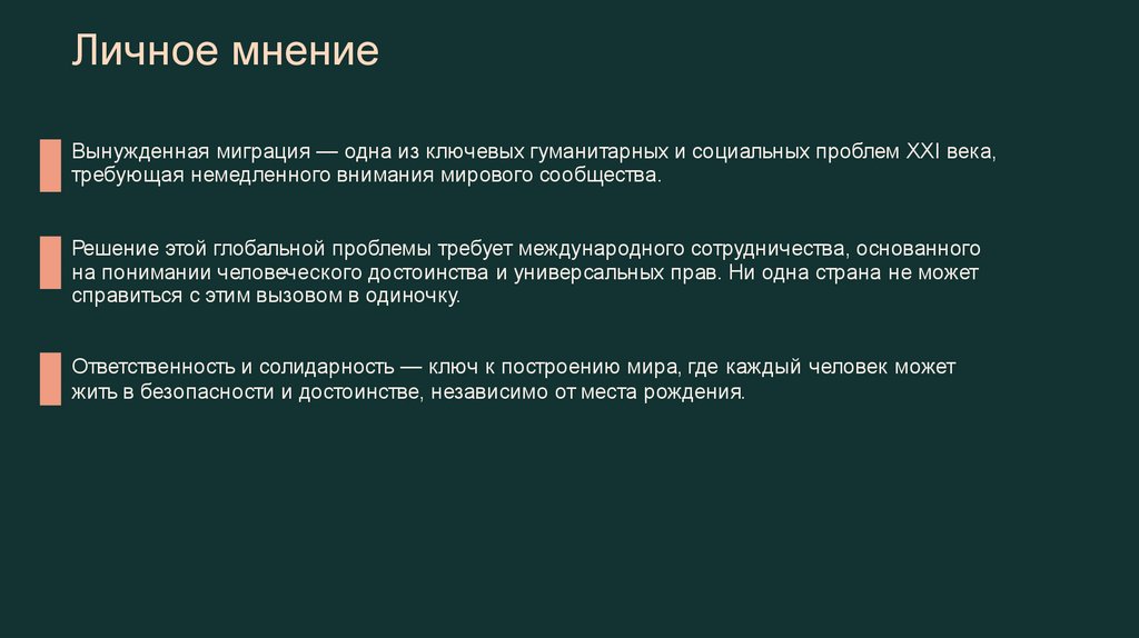 Личное мнениеВынужденная миграция — одна из ключевых гуманитарных и социальных проблем XXI века,
