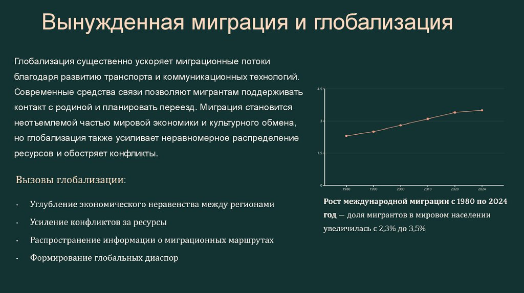Вынужденная миграция и глобализацияГлобализация существенно ускоряет миграционные потоки