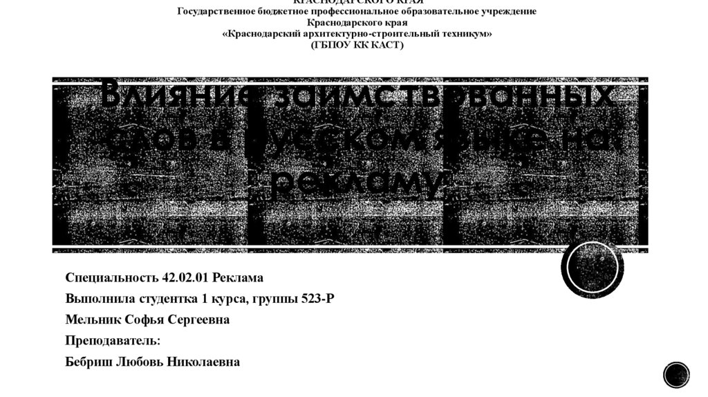 КРАСНОДАРСКОГО КРАЯГосударственное бюджетное профессиональное образовательное учреждение