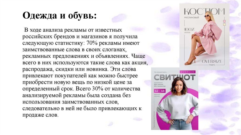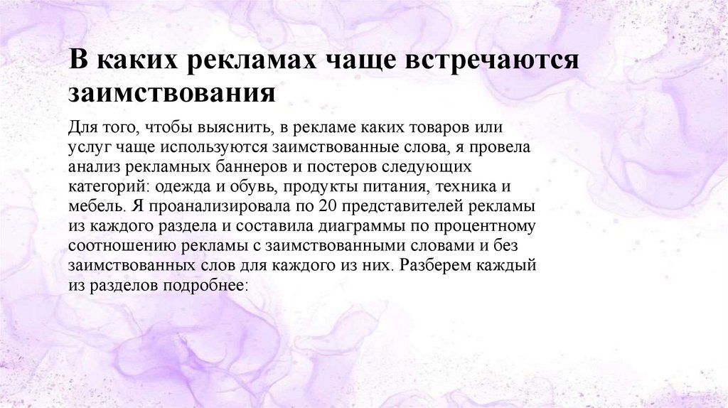 Для того, чтобы выяснить, в рекламе каких товаров или