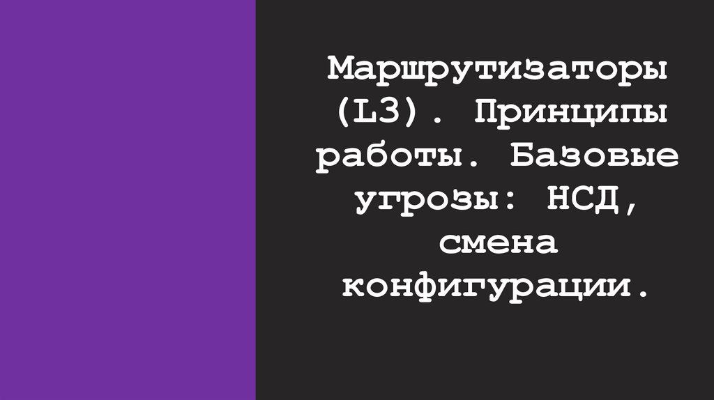 1. Маршрутизаторы (L3). Принципы работы. Базовые угрозы: НСД, смена конфигурации.