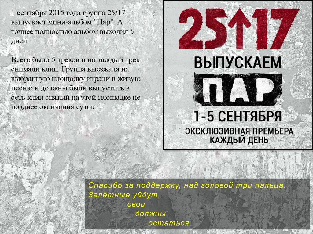 1 сентября 2015 года группа 25/17выпускает мини-альбом "Пар". А