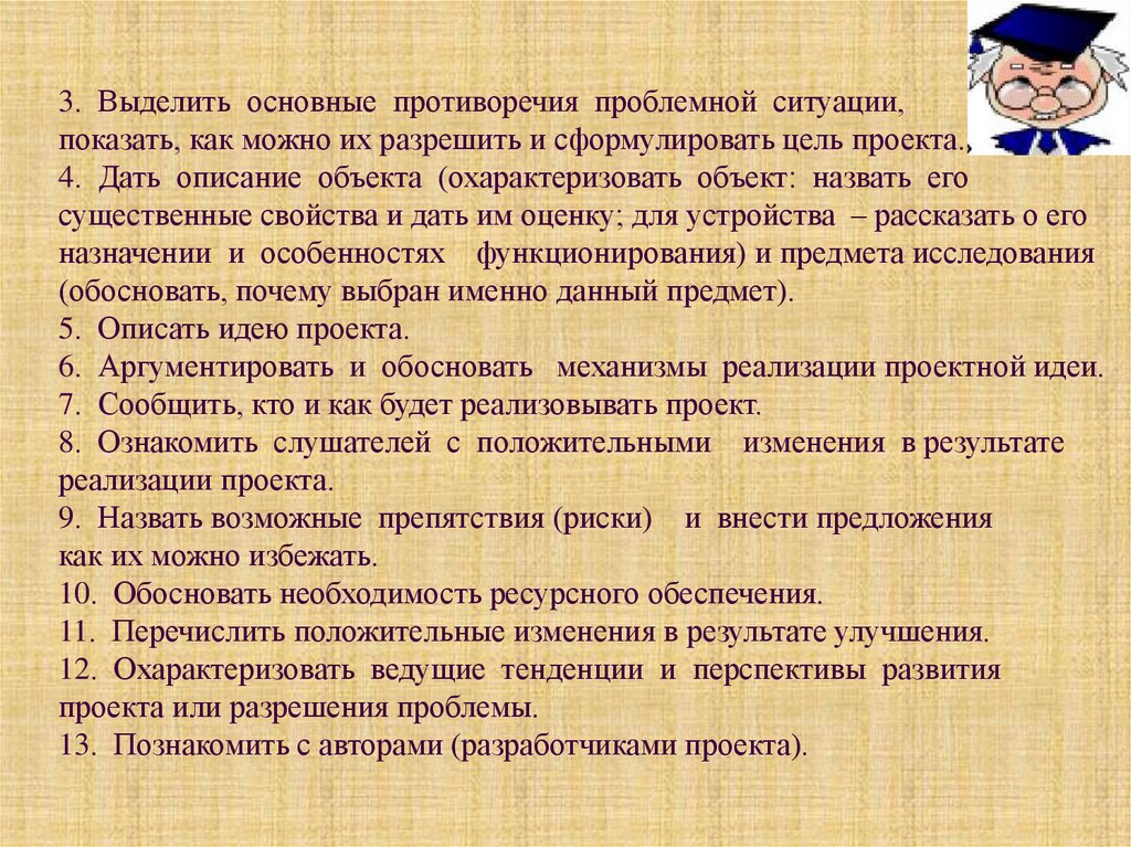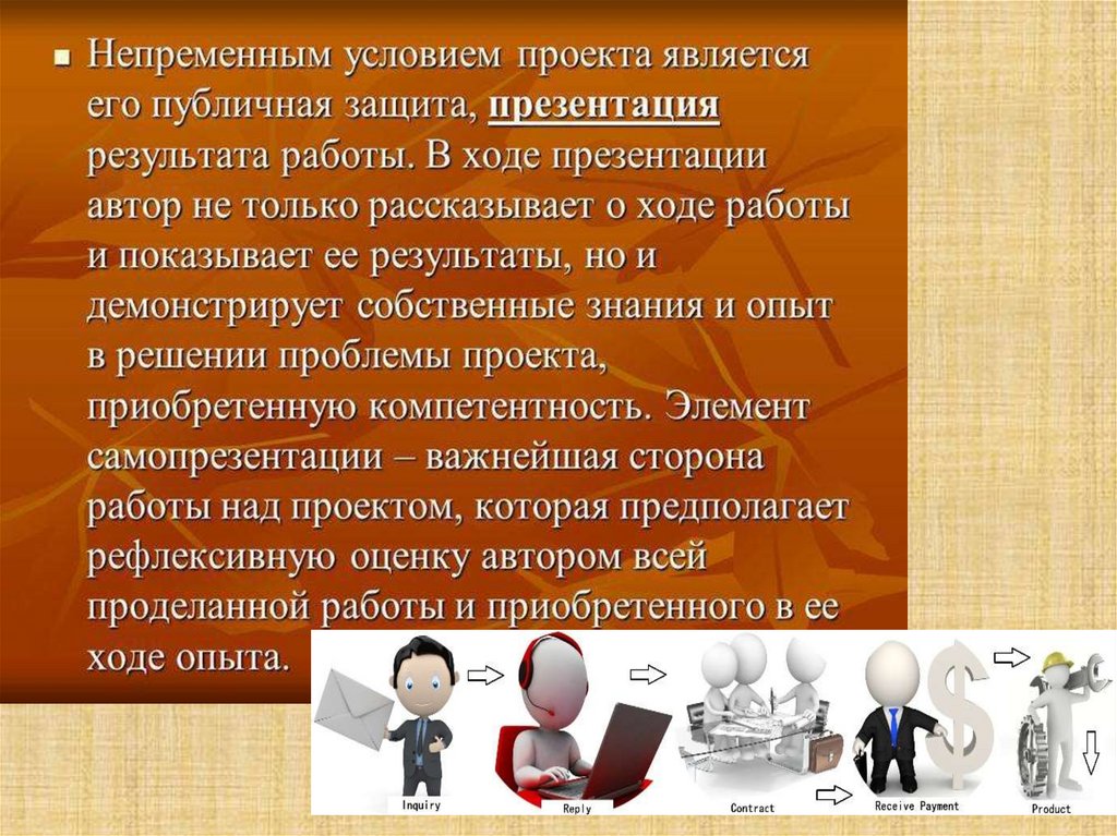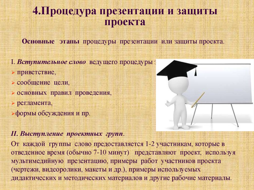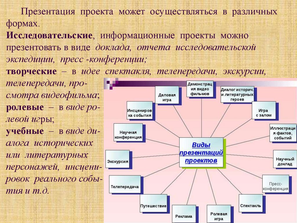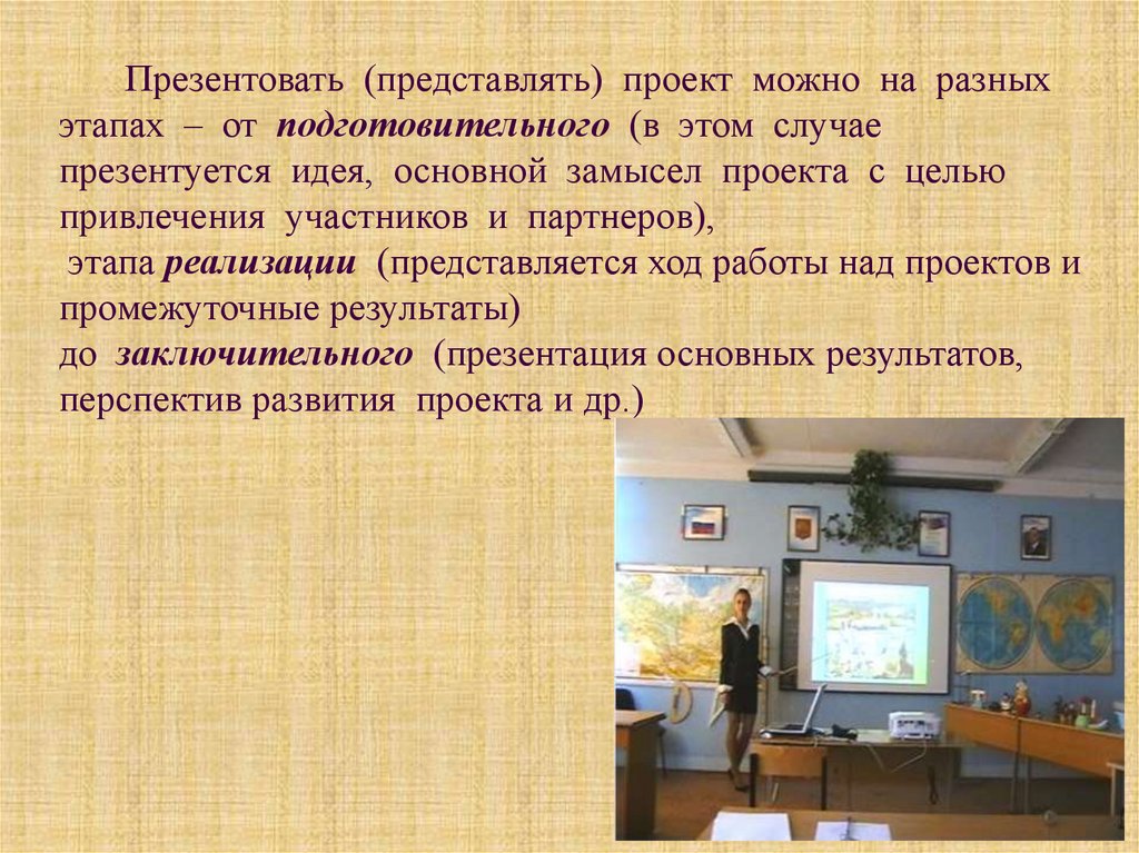 Презентовать (представлять) проект можно на разныхэтапах – от подготовительного (в этом случае