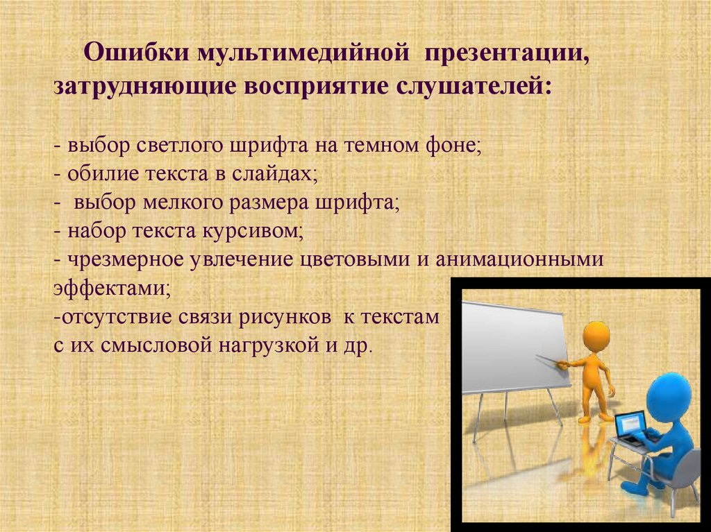 Ошибки мультимедийной презентации,затрудняющие восприятие слушателей: