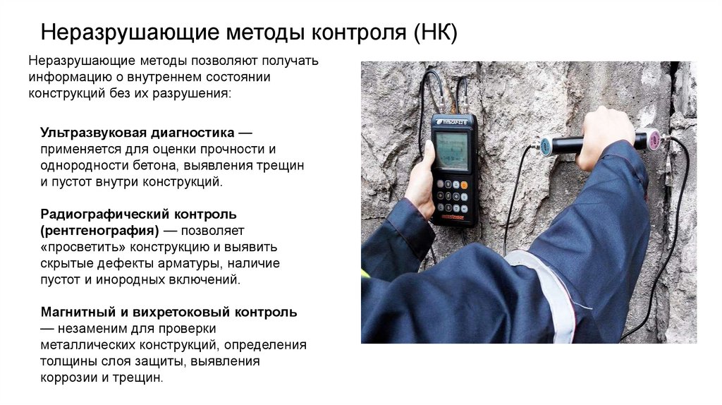 Неразрушающие методы контроля (НК)Неразрушающие методы позволяют получать