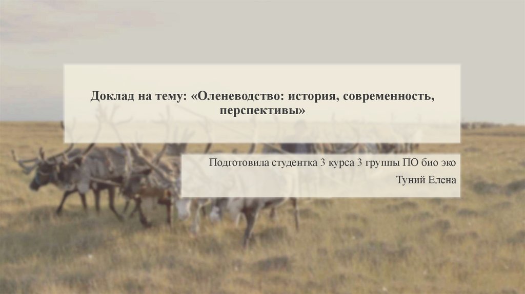 1. Доклад на тему: «Оленеводство: история, современность, перспективы»