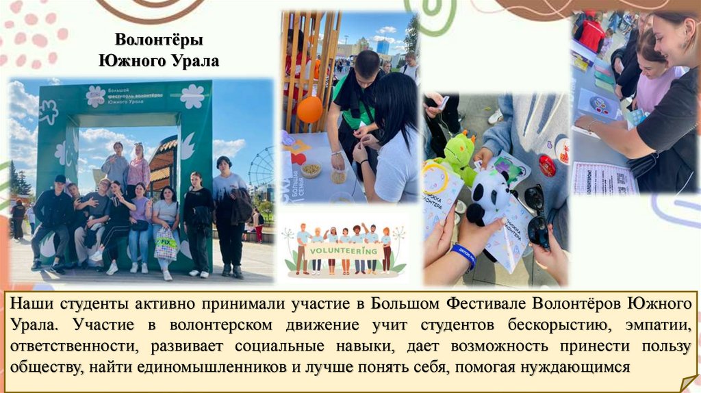 Урала. Участие в волонтерском движение учит студентов бескорыстию, эмпатии,