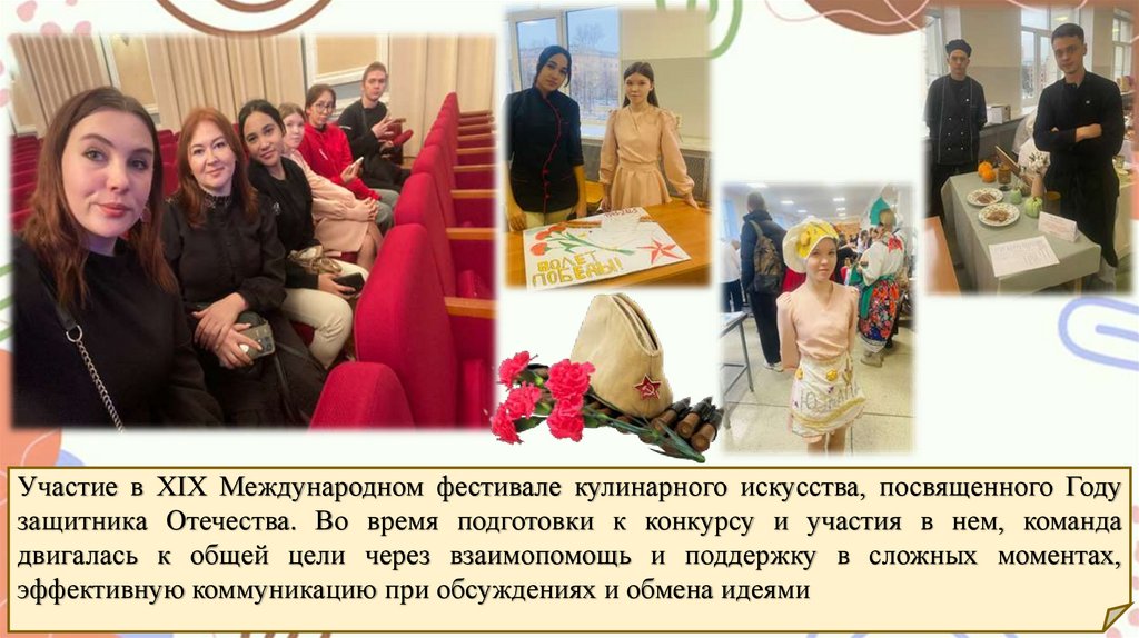 Участие в ХIX Международном фестивале кулинарного искусства, посвященного Годузащитника Отечества. Во время подготовки к конкурсу и участия в нем, команда