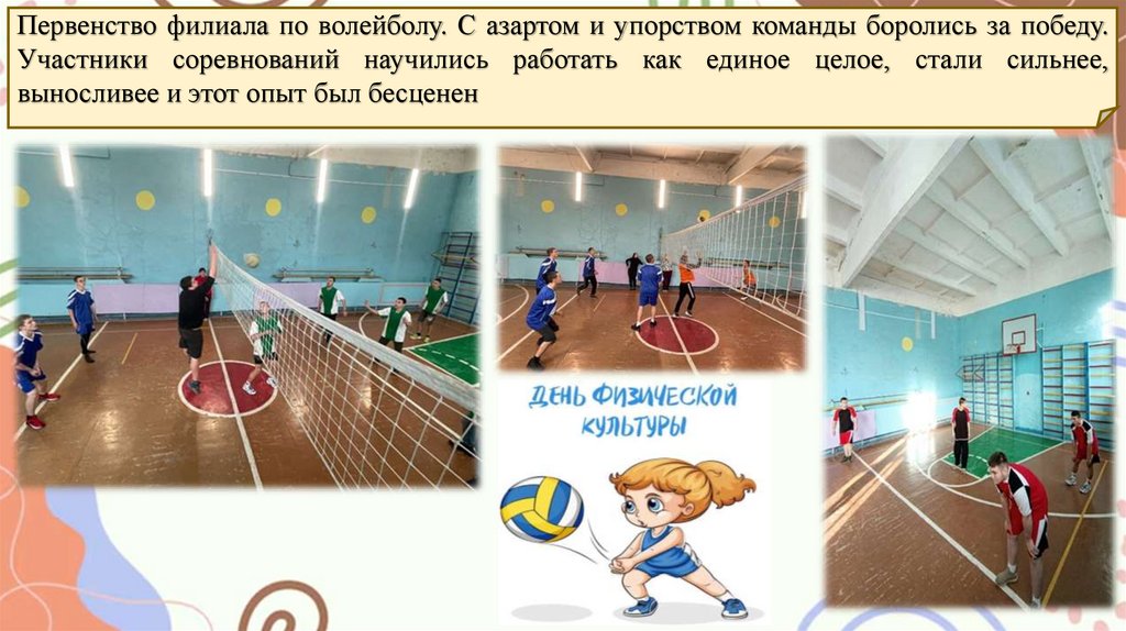Первенство филиала по волейболу. С азартом и упорством команды боролись за победу.Участники соревнований научились работать как единое целое, стали сильнее,