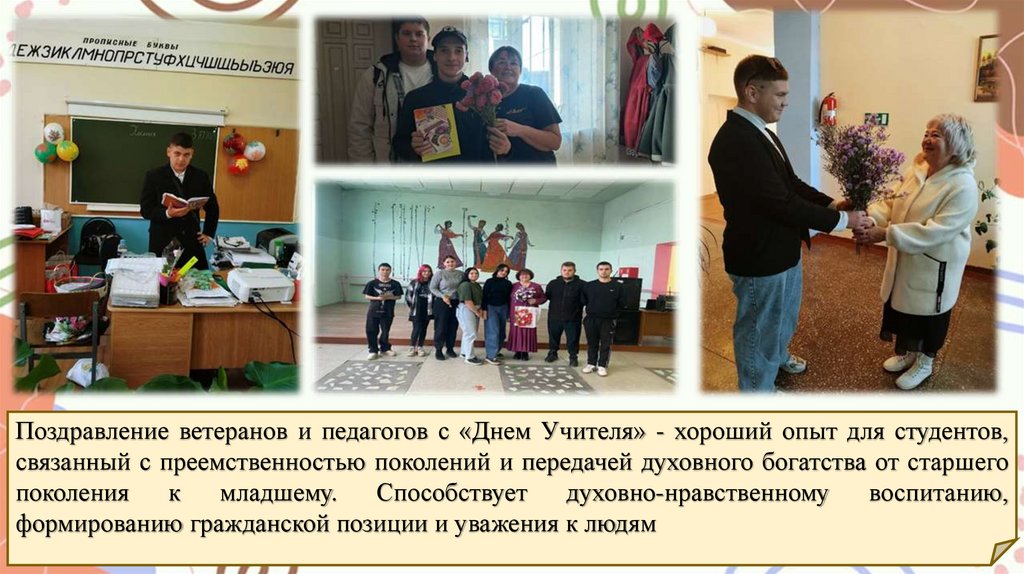 Поздравление ветеранов и педагогов с «Днем Учителя» - хороший опыт для студентов,связанный с преемственностью поколений и передачей духовного богатства от старшего