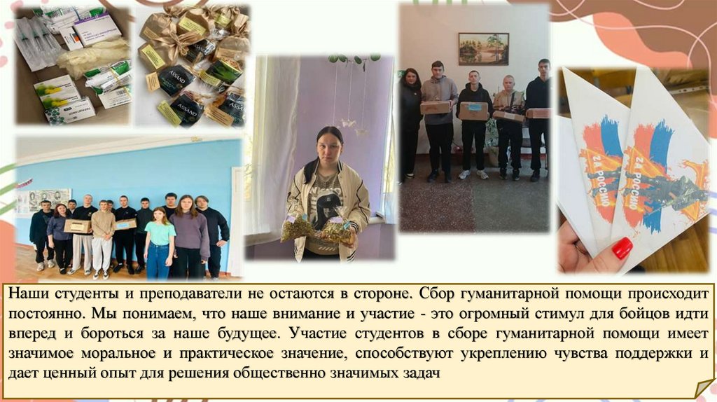 вперед и бороться за наше будущее. Участие студентов в сборе гуманитарной помощи имеет