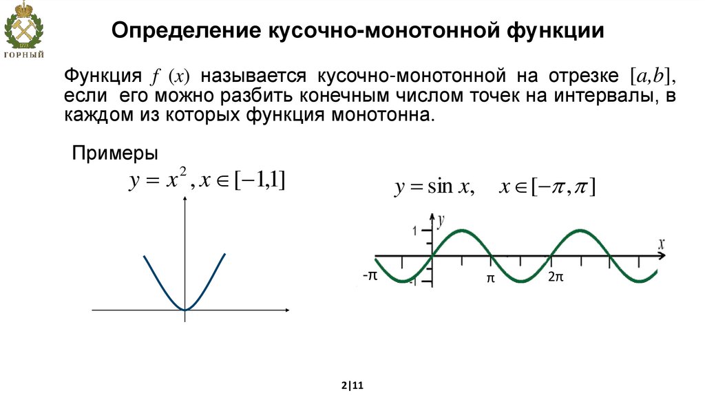 Определение кусочно-монотонной функцииФункция f (x) называется кусочно-монотонной на отрезке [a,b],