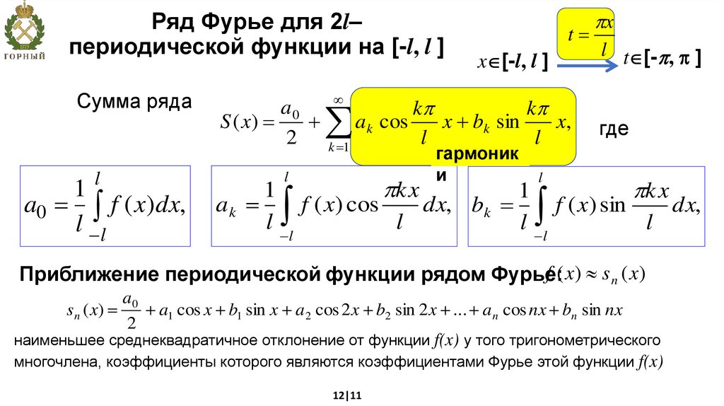 Ряд Фурье для 2l–периодической функции на [-l, l ]