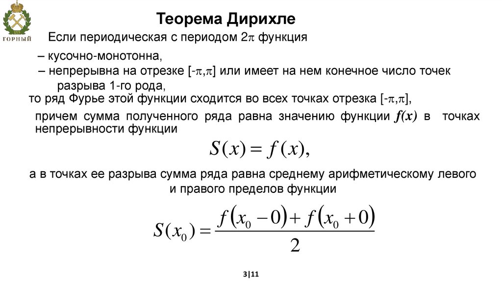 Теорема ДирихлеЕсли периодическая с периодом 2 функция