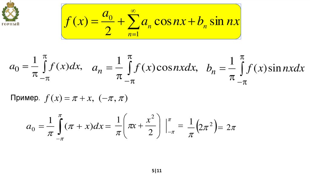 f ( x) cos nxdx, bn f ( x) sin nxdx