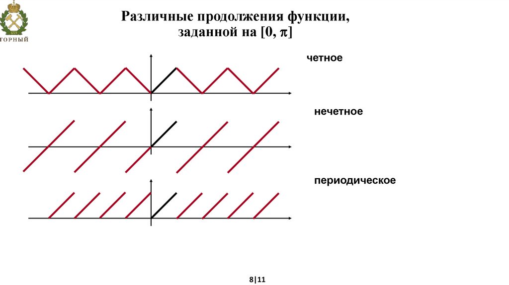 Различные продолжения функции,заданной на [0, ]
