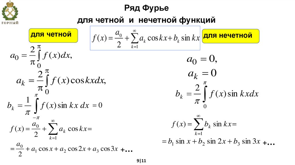 f ( x) ak cos kx bk sin kx для нечетной