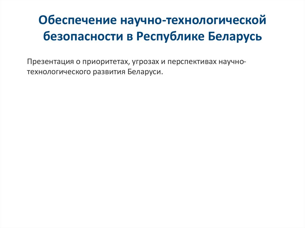 Обеспечение научно-технологическойбезопасности в Республике Беларусь