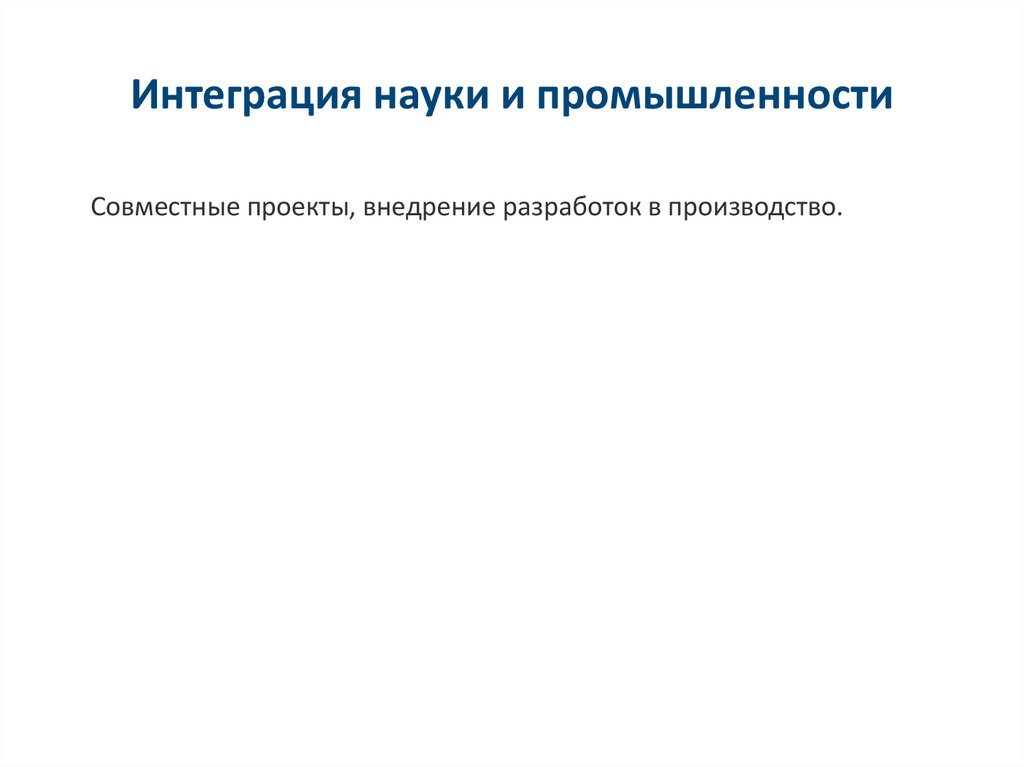 Интеграция науки и промышленностиСовместные проекты, внедрение разработок в производство.