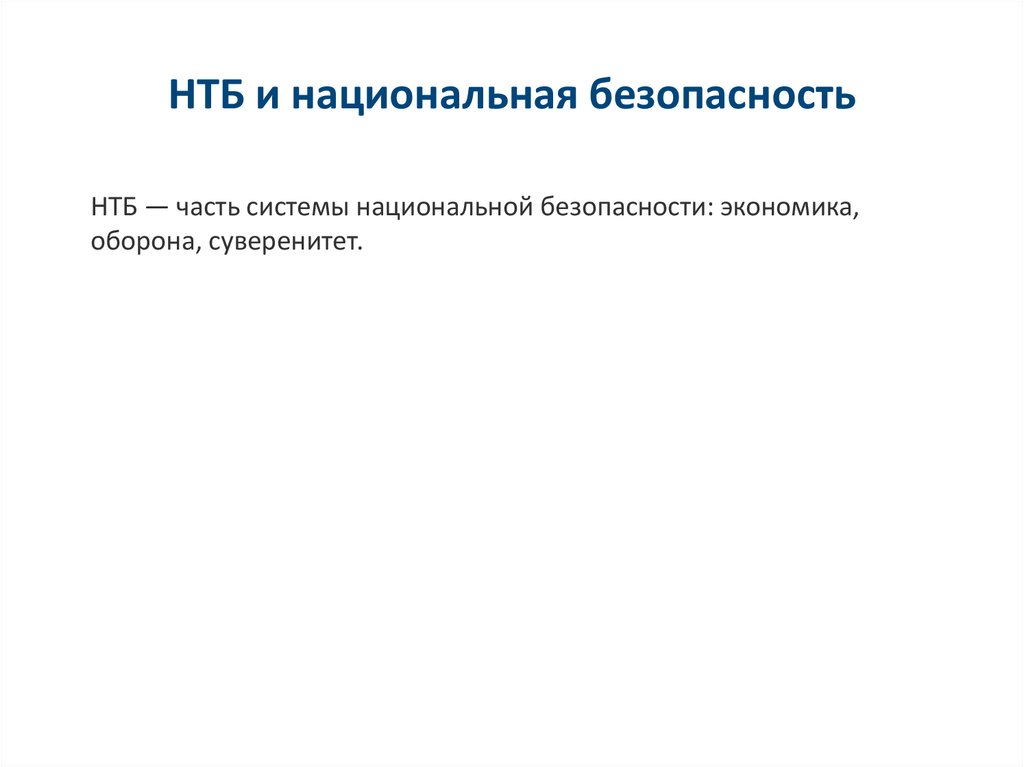 НТБ и национальная безопасностьНТБ — часть системы национальной безопасности: экономика,