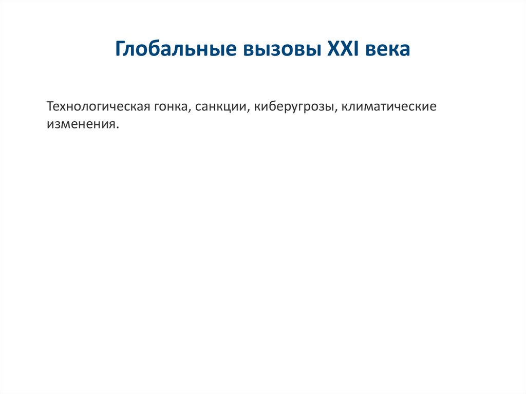 Глобальные вызовы XXI векаТехнологическая гонка, санкции, киберугрозы, климатические