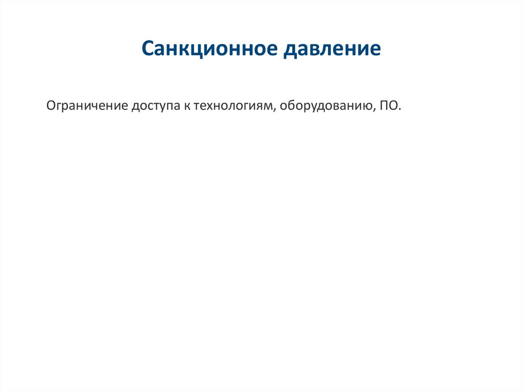 Санкционное давлениеОграничение доступа к технологиям, оборудованию, ПО.