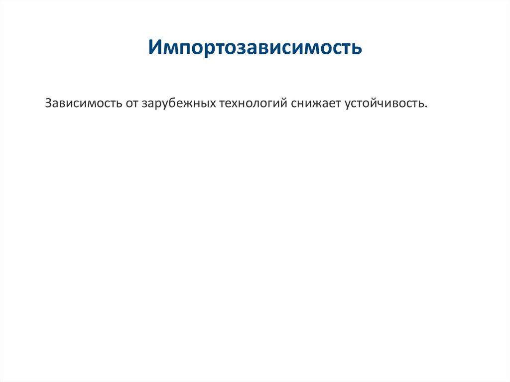 ИмпортозависимостьЗависимость от зарубежных технологий снижает устойчивость.