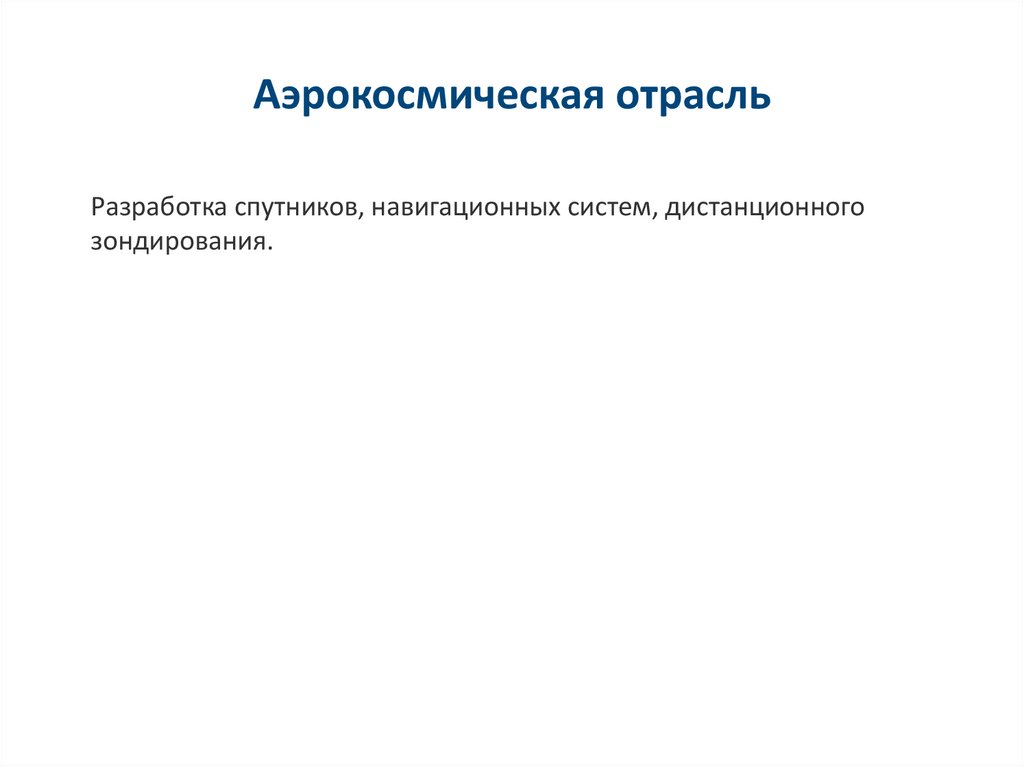 Аэрокосмическая отрасльРазработка спутников, навигационных систем, дистанционного